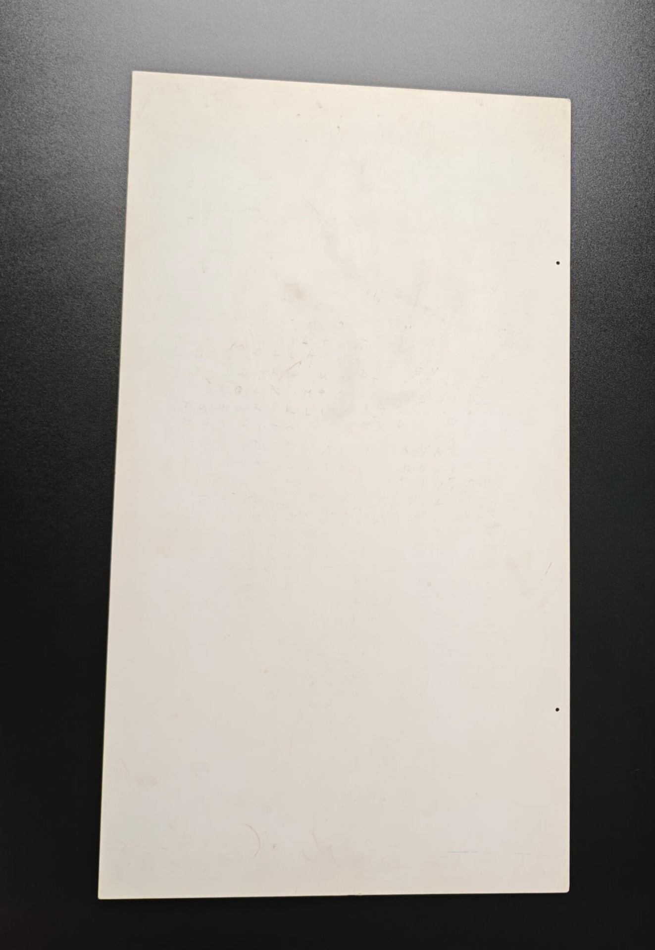 - Materiál: Tvrzený plast (dobový tisk na plastové desce).